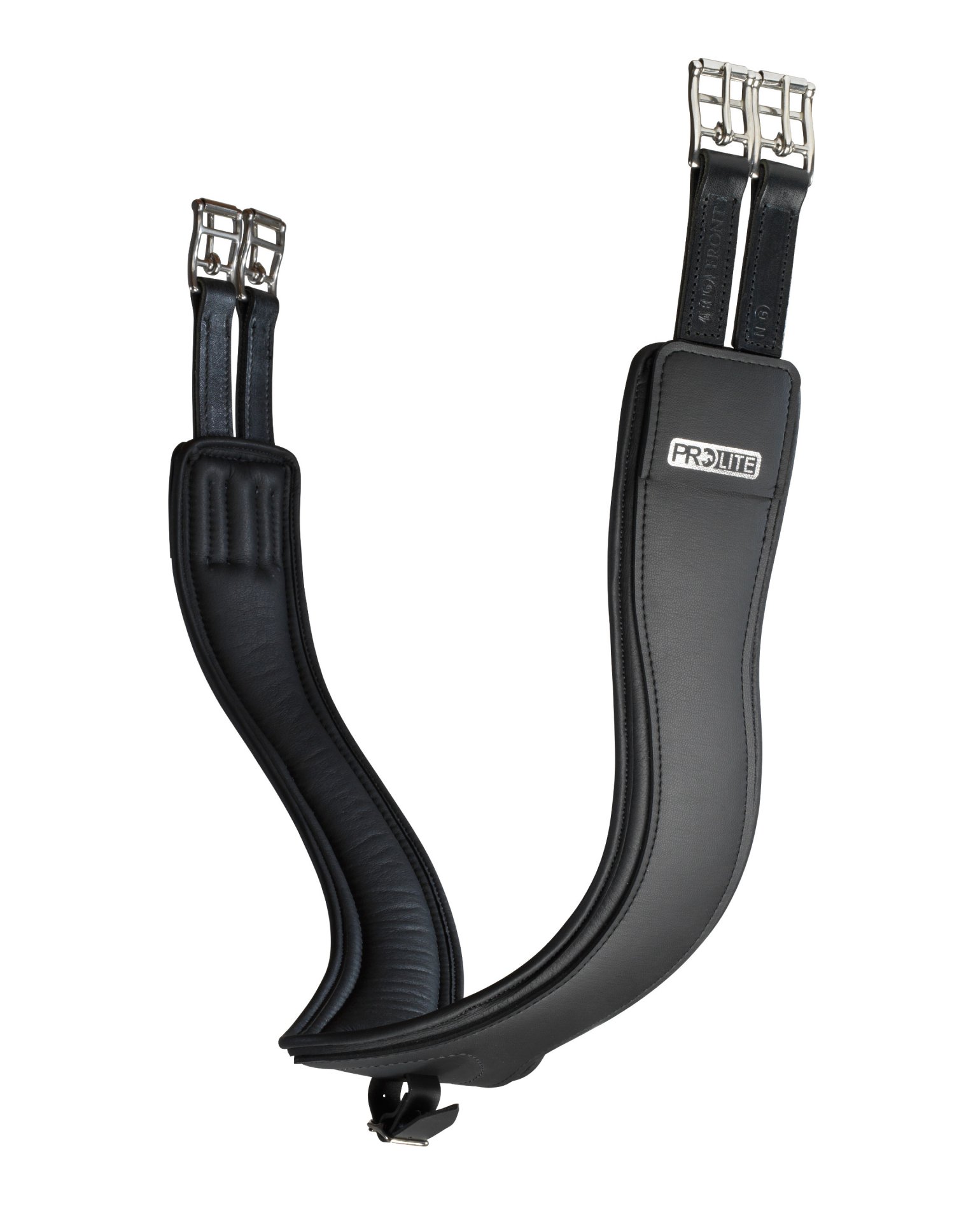 It is uniquely contoured to avoid the sensitive area behind the elbow. Strategically placed cushioning allows the front edge of the girth to "to float" and allow the horse's muscles to move underneath it, rather than being blocked by it.